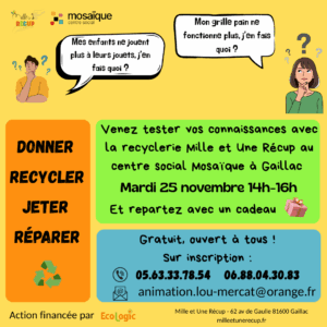 Mille et une récup : Recyclerie et insertion sociale et professionnelle.