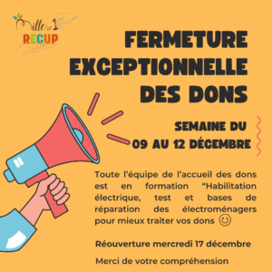 FERMETURE EXCEPTIONNELLE ACCUEIL DES DONS – DU 09 AU 12 DÉCEMBRE 2025