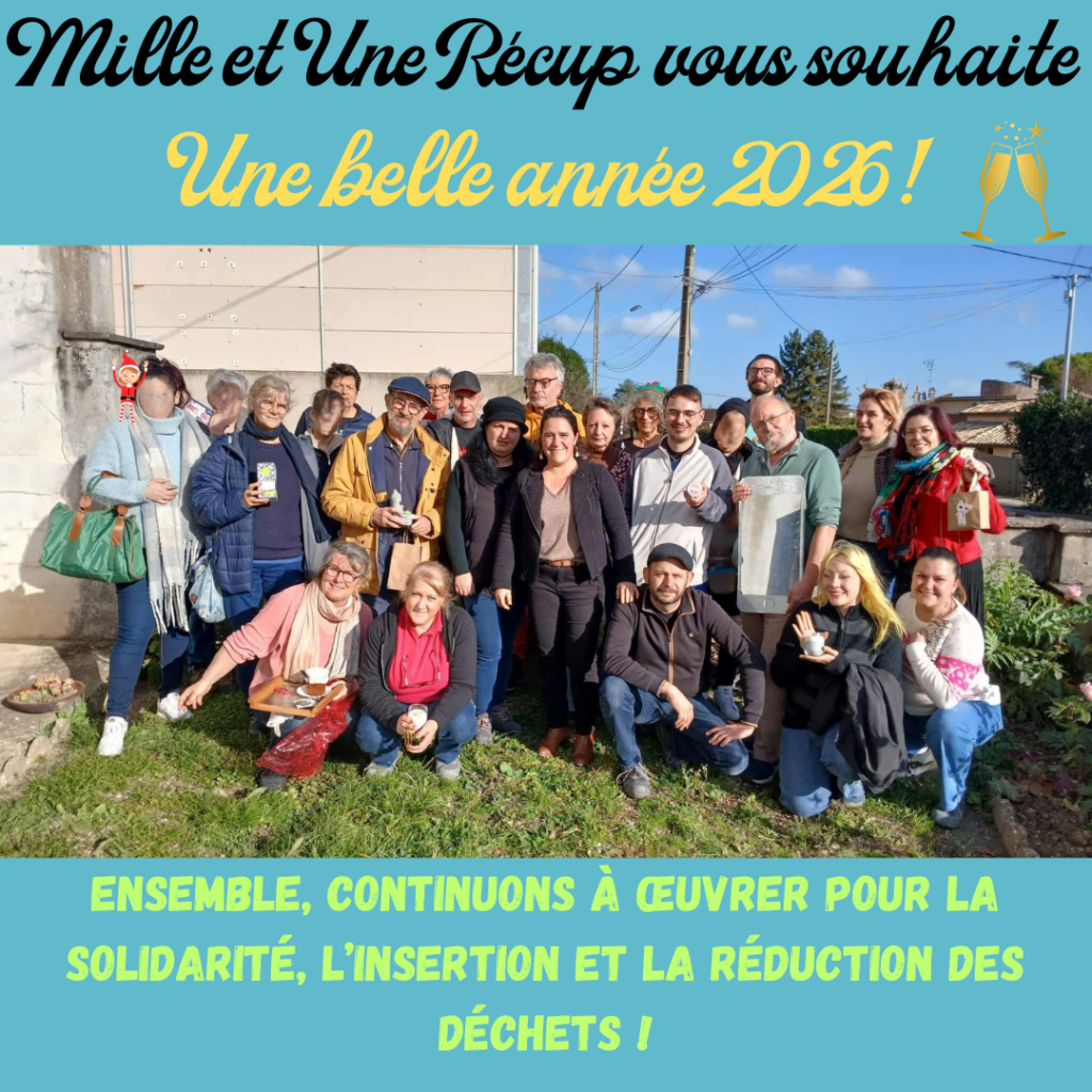 Toute l’équipe de Mille et Une Récup vous souhaite à toustes une merveilleuse année 2026 remplie de joies, d’amour, de santé et de folies !